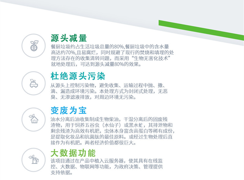 三、本公司系列設備適用餐廚垃圾就地處理和集中處理,設備應用領域:大中型社會餐飲、美食城、美食街、政府機關食堂、企事業單位、學校、部隊、醫院、會議中心、車站、碼頭、機場、海艦船、大型超市、商業綜合體、農貿市場、蔬菜基地、屠宰場、社區垃圾中轉站、旅游景區、高速公路服務區等領域。