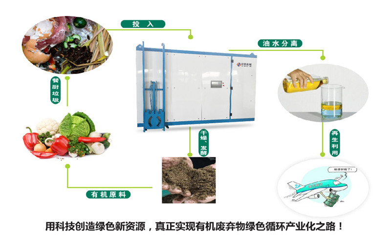 二、大噸位自由組合多種規格型號供用戶選配,采用高溫好氧生物降解技術,垃圾降解率95%以上,分解后物質為水蒸氣和二氧化碳,可批次加料或持續加料、步進式分解。設備運行時間根據物料種類和添加量,快0.5小時完成分解,慢10小時完成分解。每處理一噸垃圾耗電30度,消耗生物菌種量折算人民幣約8-10元。大噸位設備配套分揀平臺,自動計重提升機、破碎機、壓榨機、螺旋輸送或鋼帶輸送機、復合型除臭機、油水渣分離機。可實現廢油自動回收,廢渣通過平板壓榨固液分離機返回生物降解倉處理。